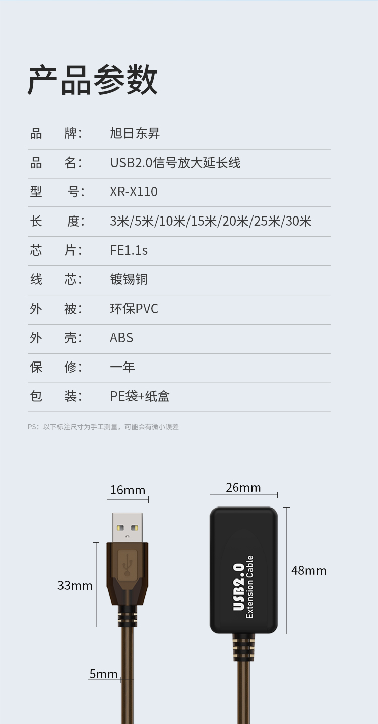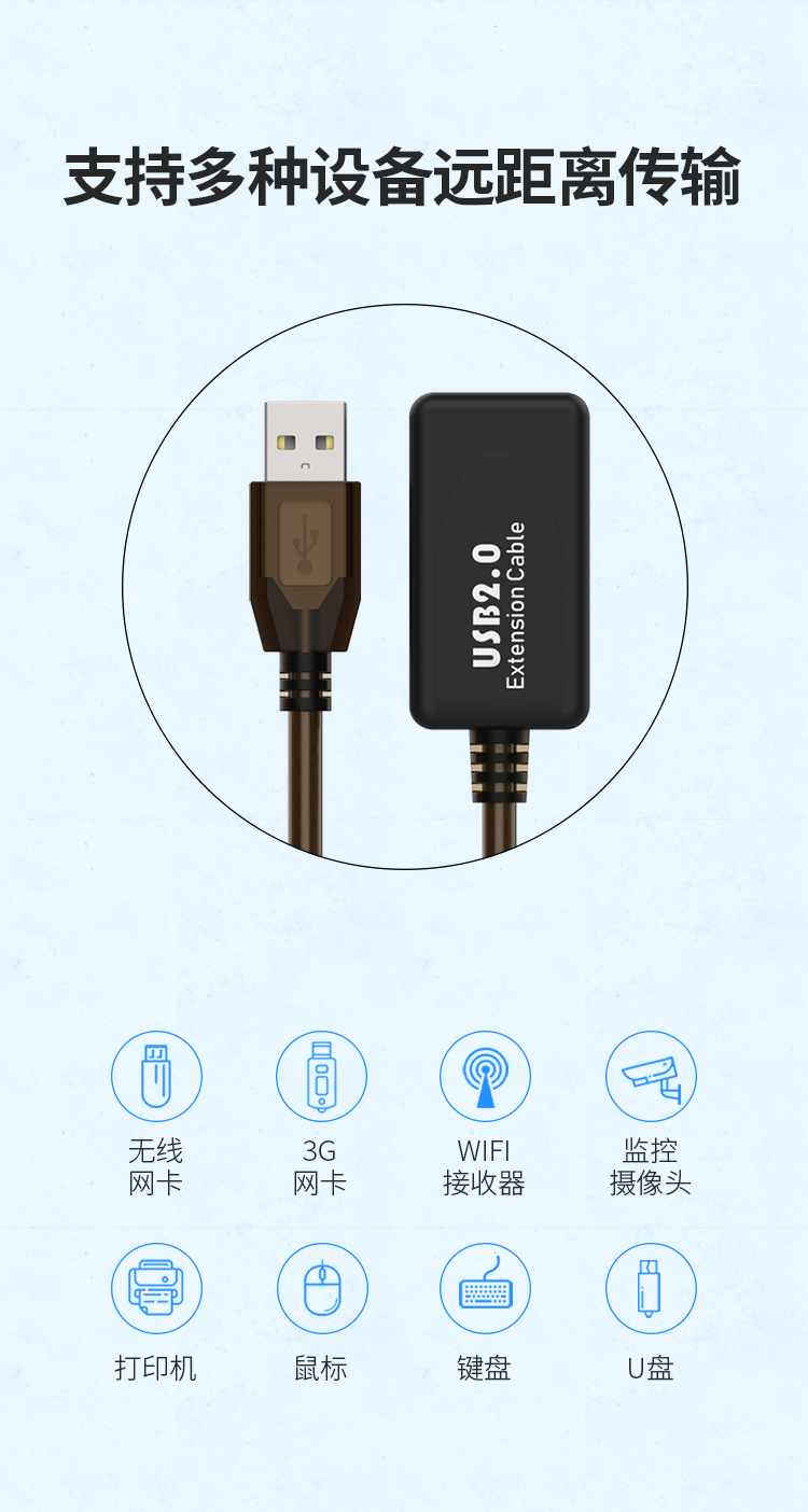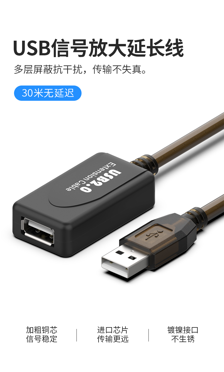 SC1428 USB2.0 帶磁環信號放大延長線 5M