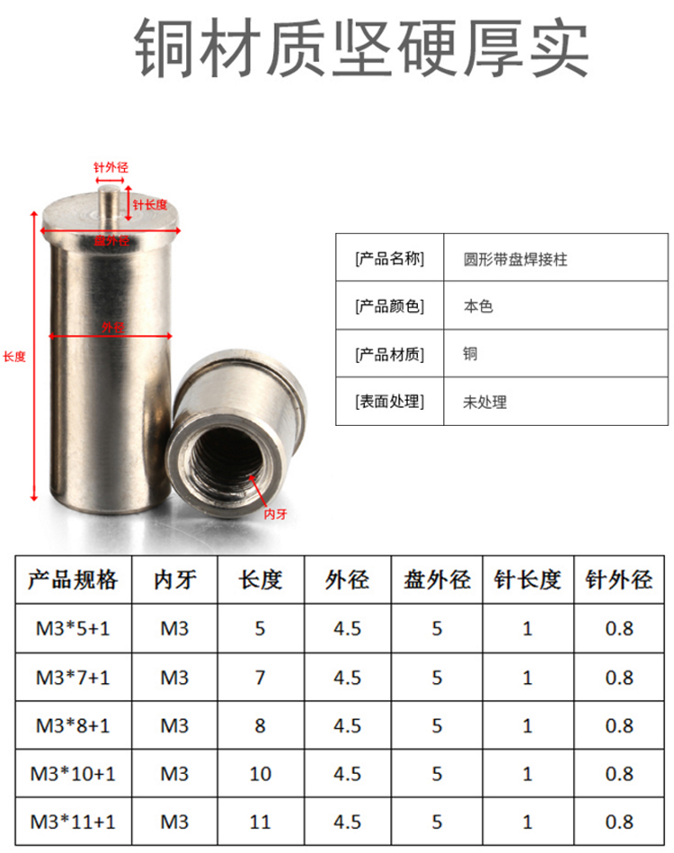 M3圓形帶盤焊接柱 T型柱PCB點焊母柱 M3*7+1