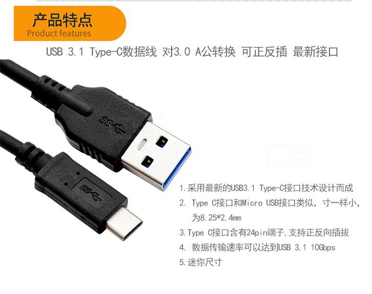 USB3.1-C(M)-USB3.0-A(M)-0.3M