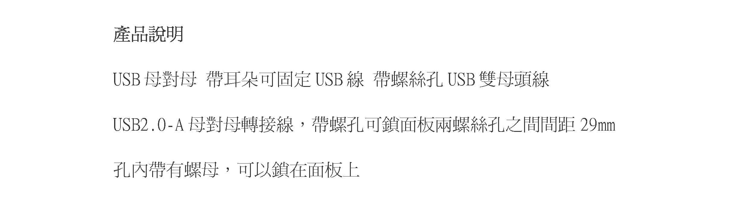 USB2.0 母對母 帶耳朵螺絲孔延長線 1.5m