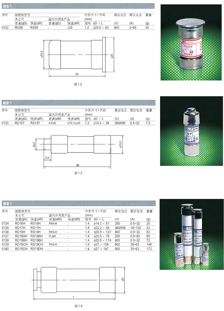 快速(aR)圓筒保險絲 35A/500V
