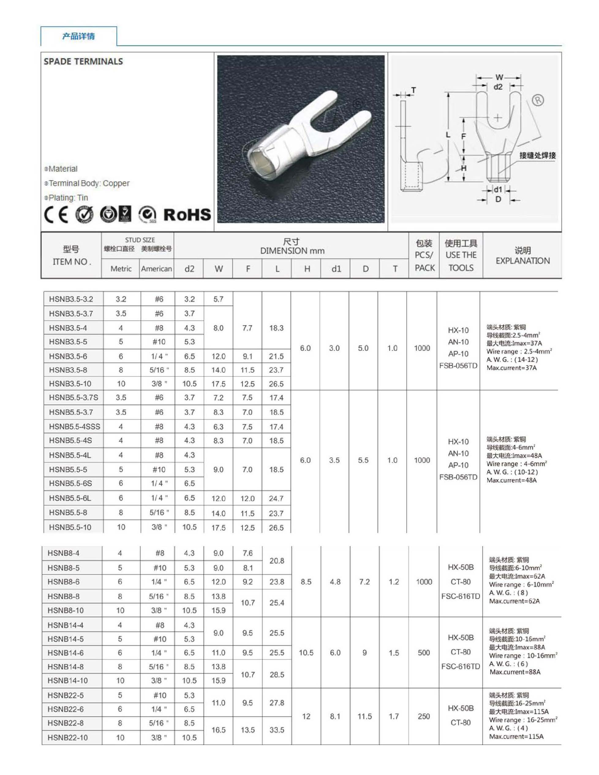 Y型裸端子 HSNB8-6