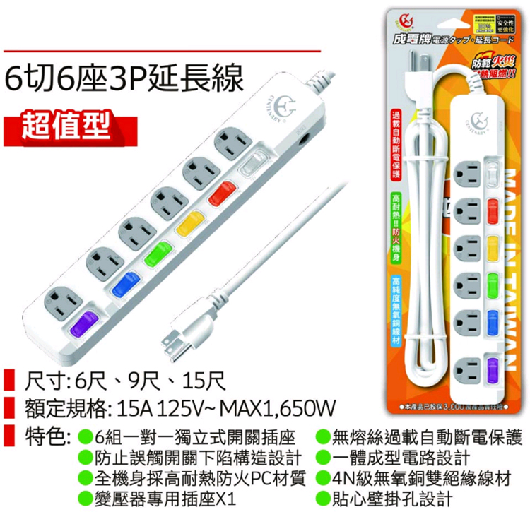 6切6座3P延長線 4.5M