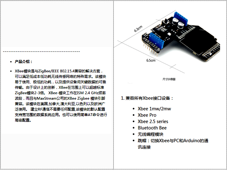 兼容Arduino Xbee/Bluetooth Bee無線數據傳輸擴展板