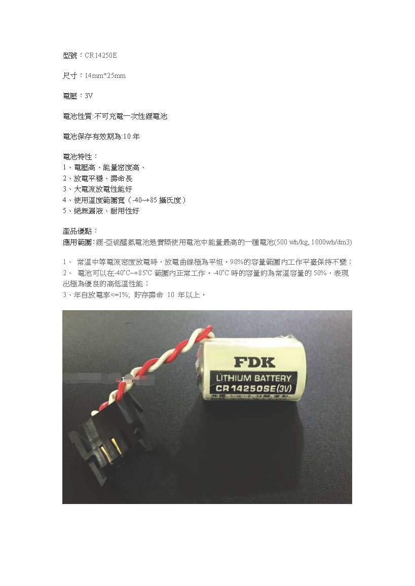 FDK_PLC工控電池 3V CR14250SE+插頭
