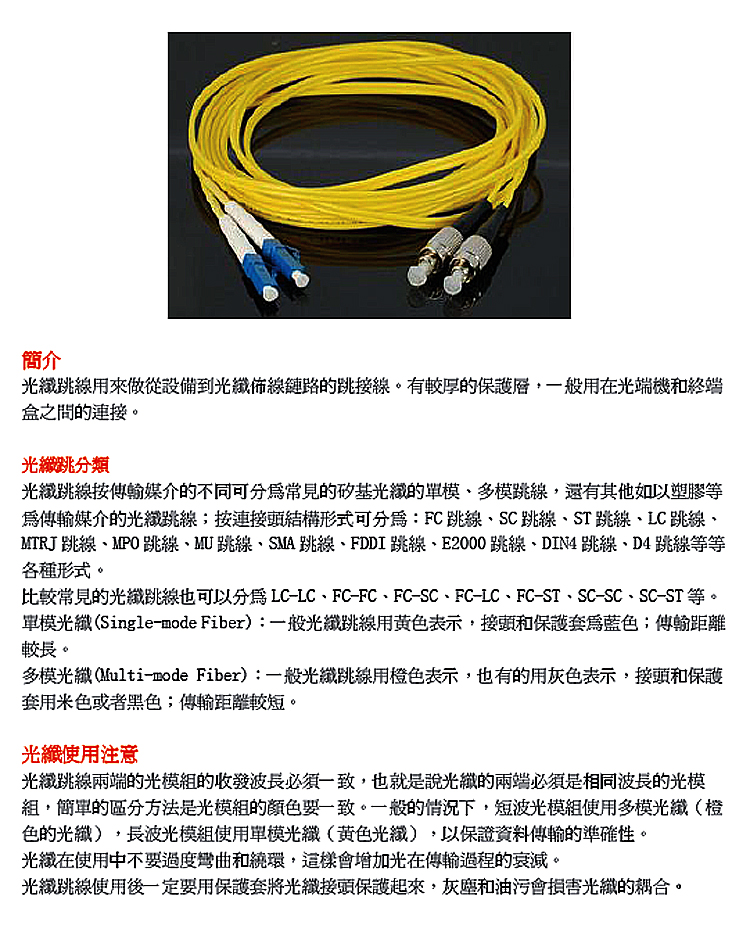 單模雙芯光纖短跳線