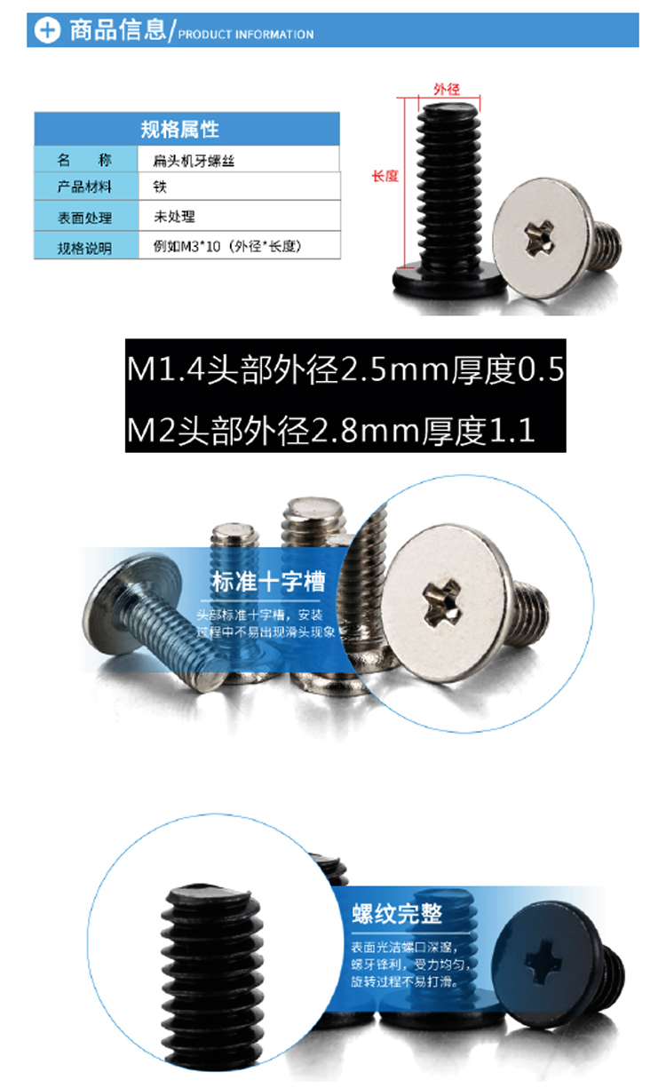 平頭薄圓頭十字機械牙黑鋅螺絲