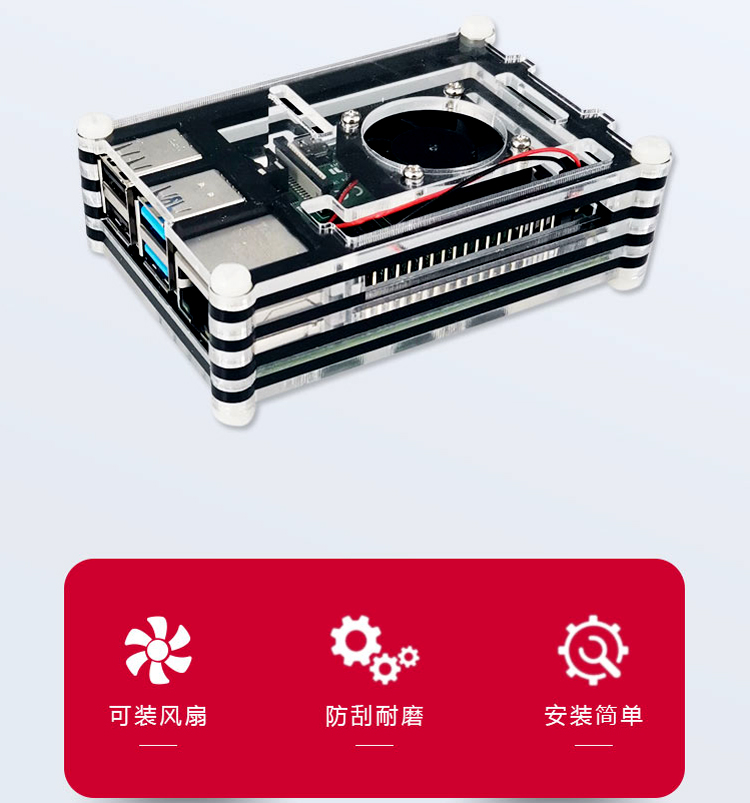 PI3B+9層亞克力透明黑外殼+風扇 適用樹莓派3B+