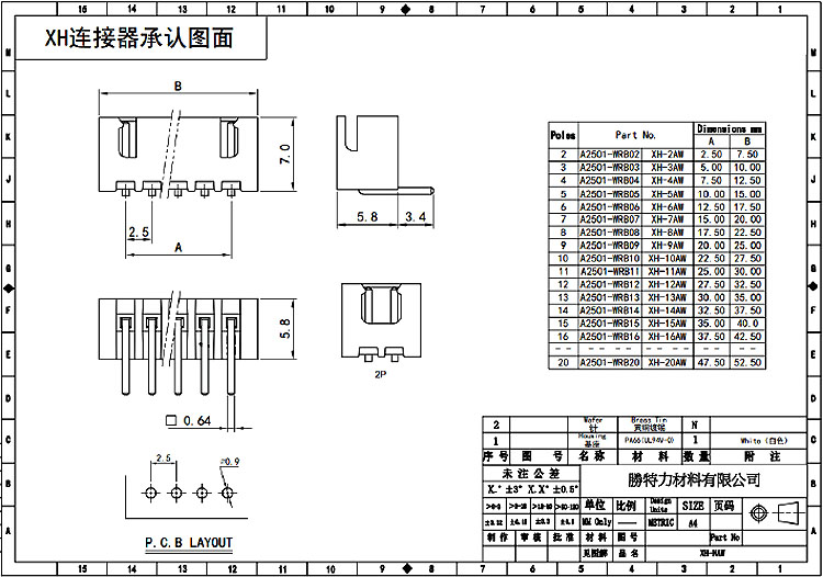 XH2.5mm-16P 公座 P:2.5mm【ROHS】