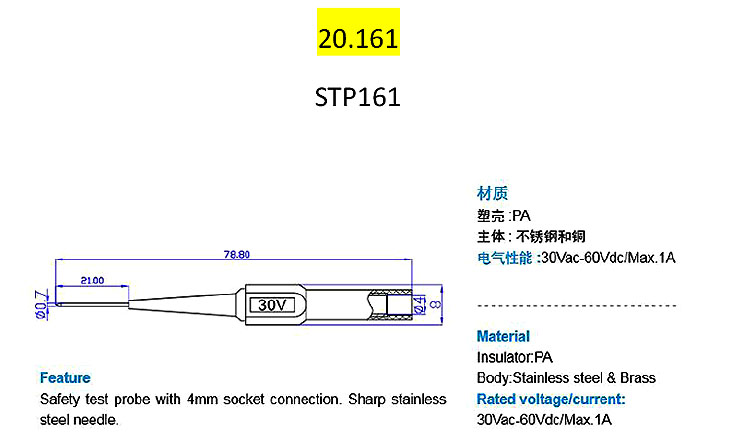 STP161汽車維修測試刺破線表棒背針萬用表筆 直徑0.7mm 黑色
