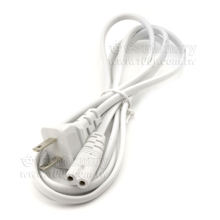 美式2扁帶孔插+八字尾電源線- 2*0.75mm2 1.5M 白色