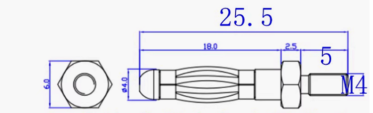 裸露香蕉插頭-2.5mm/M2.5*6.5-燈籠型六角鍍金