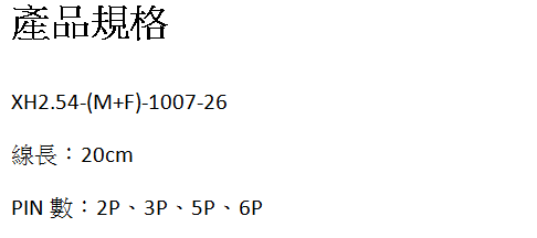 XH2.54-4P(M+F)-1007-26-20CM-雙頭