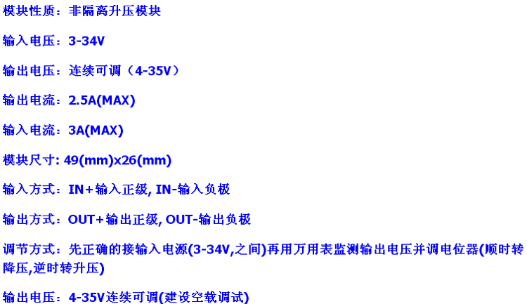 升壓Boost模塊 Input:3V-34V Output:4-35V/3A