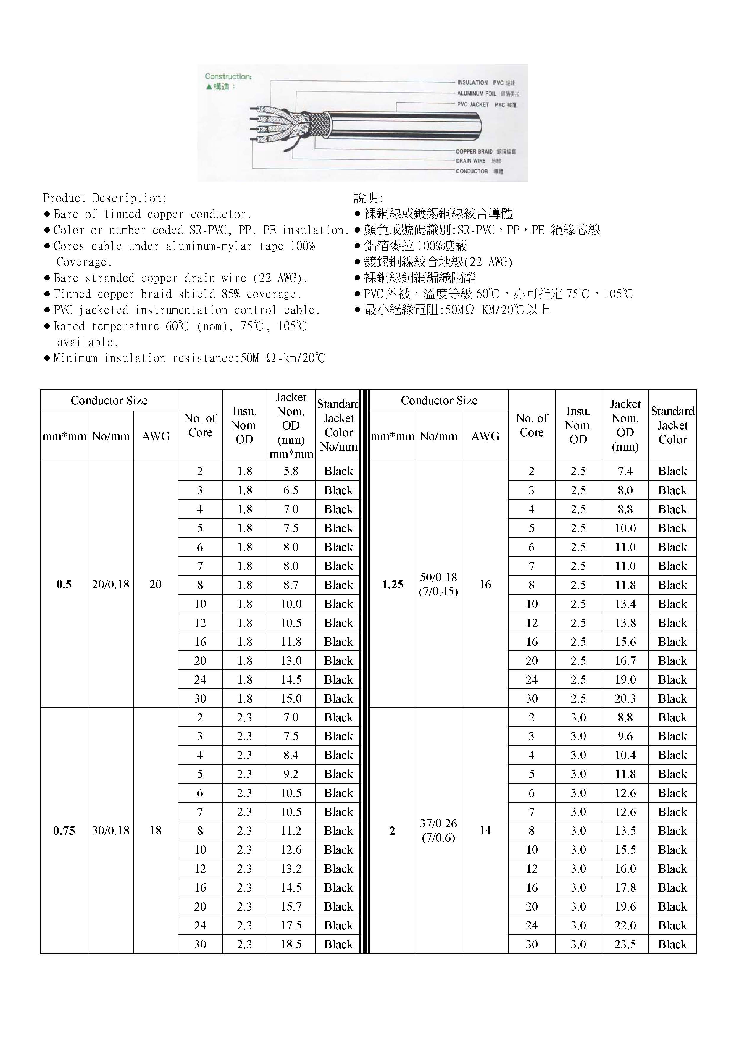 SCVV0.75-2C PVC銅網鋁箔隔離電纜 0.75mm2*2C