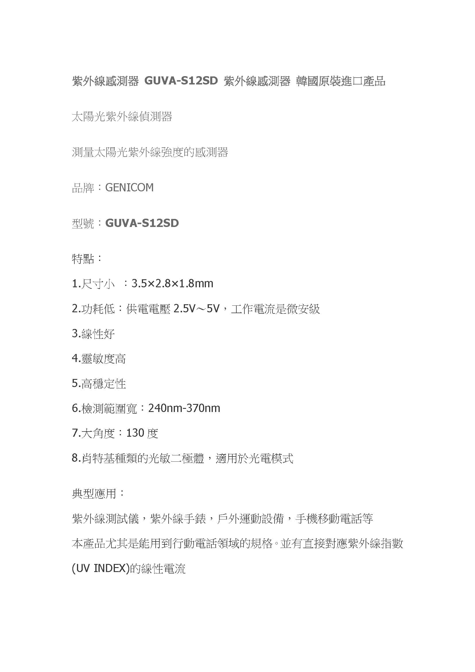 太陽光紫外線傳感器