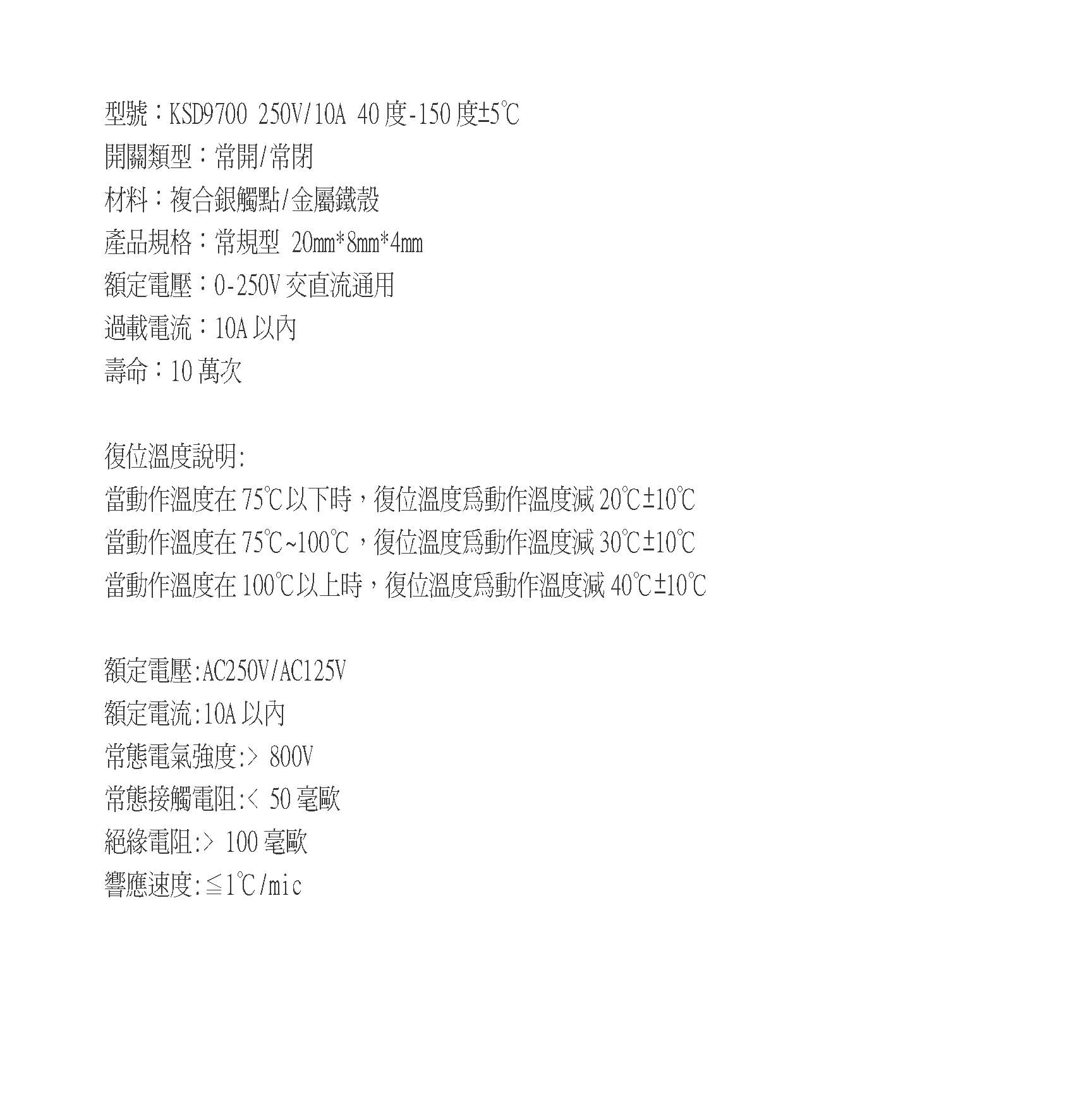 KSD9700-金屬殼-5A-常閉-150度