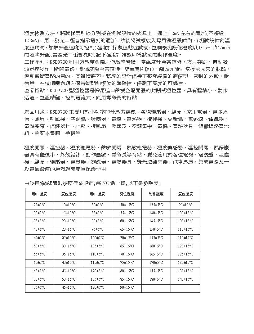 常閉溫控開關