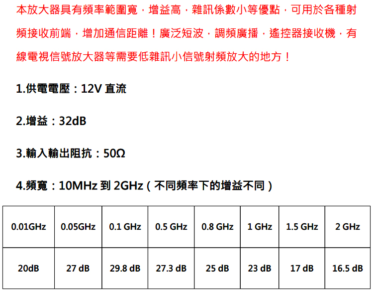 1M-2GHz射頻放大器模組