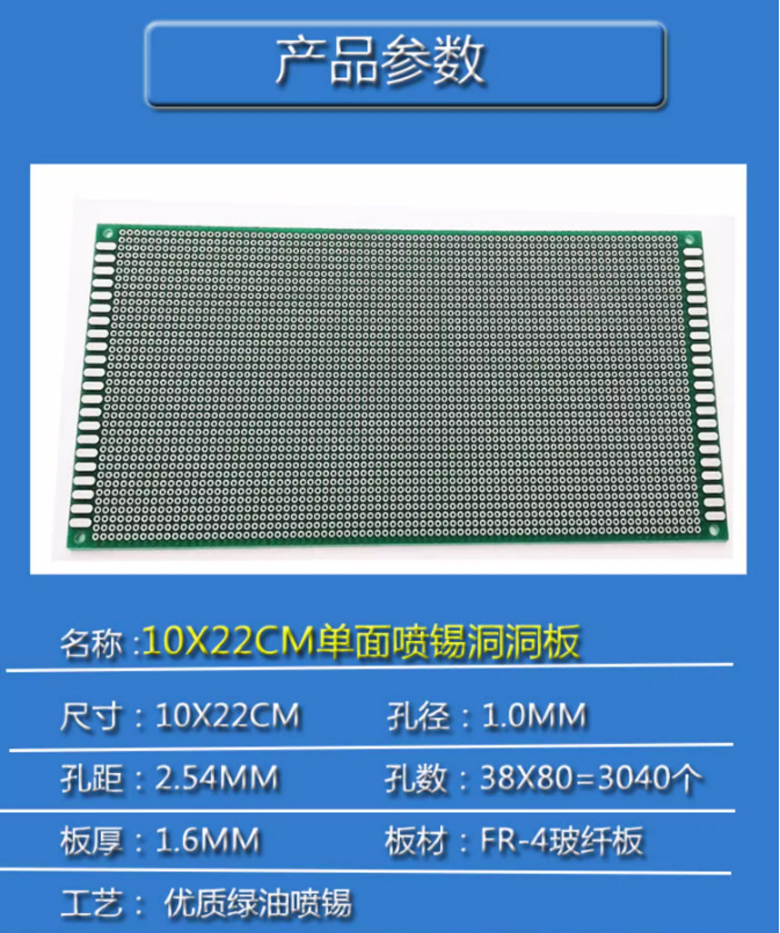 單面洞洞板 10*22cm 孔距2.0mm 孔徑:1.0mm 厚:1.6mm