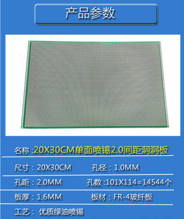 單面洞洞板 20*30cm 孔距2.0mm 孔徑:1.0mm 厚:1.6mm