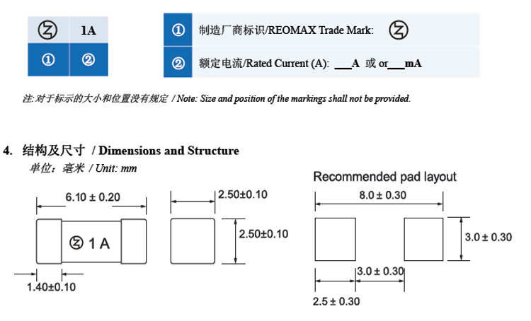 2410(6.1*2.57*2.57mm)保險絲250mA/250V慢斷