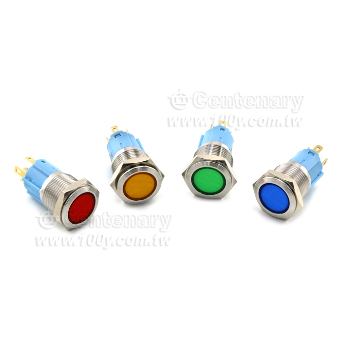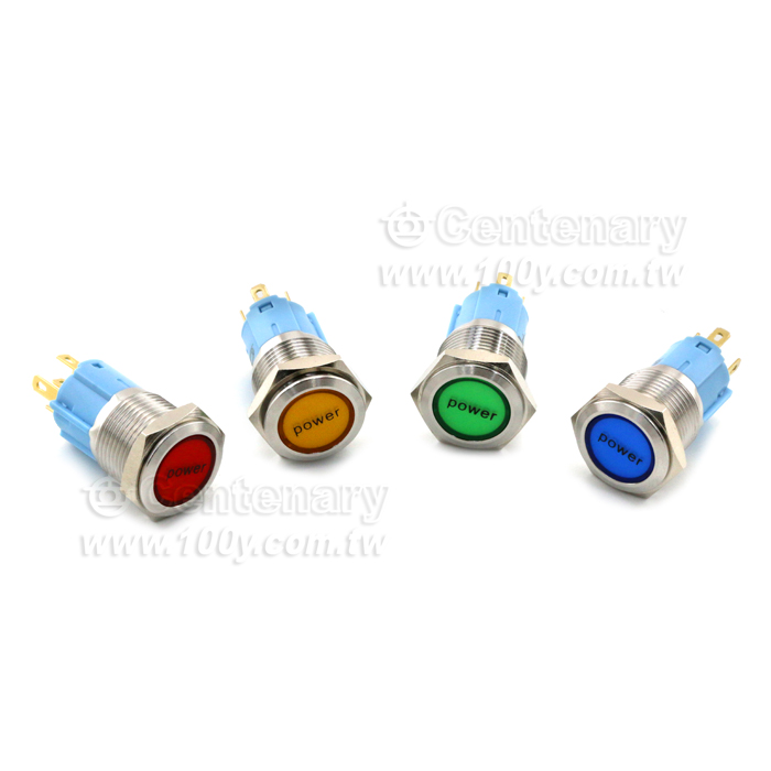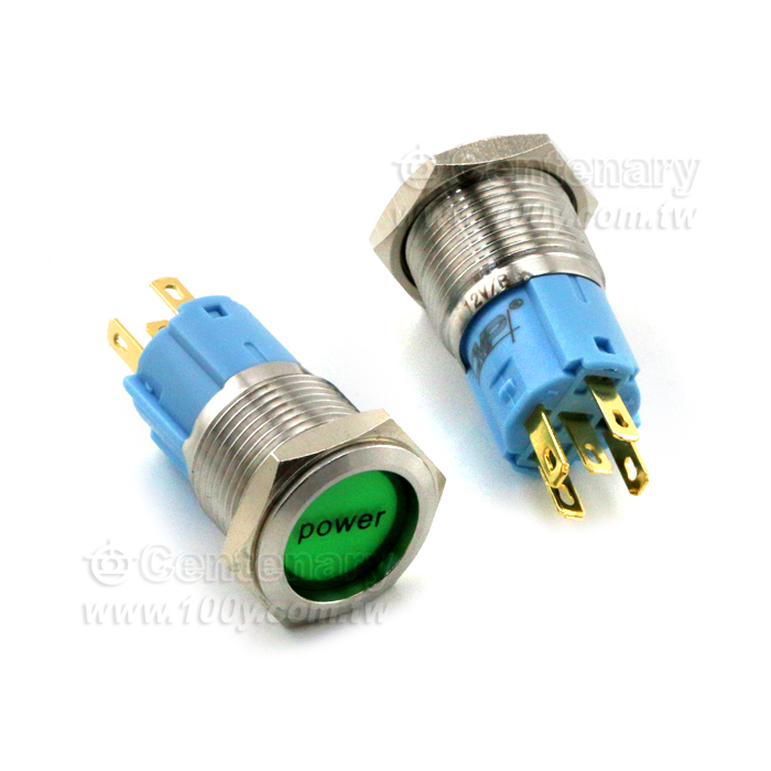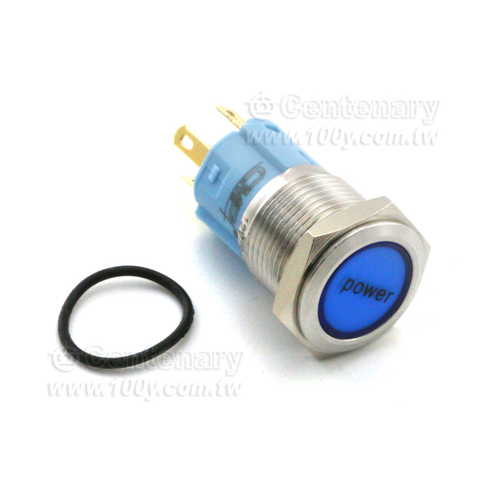 圓形發光金屬按鍵開關 藍色 16mm 24V