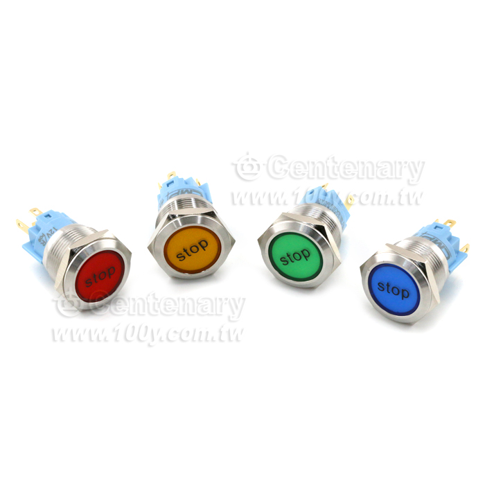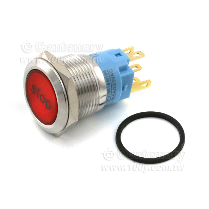 圓形發光金屬按鍵開關 紅色 19mm 24V