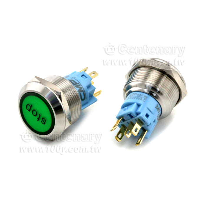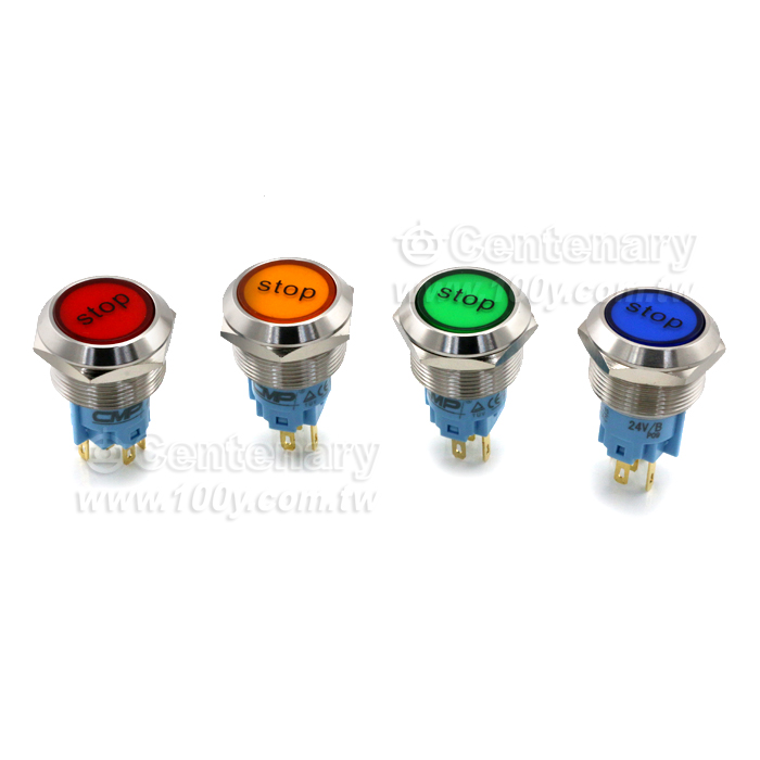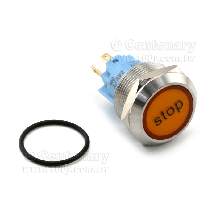 圓形發光金屬按鍵開關 黃色 22mm 12V