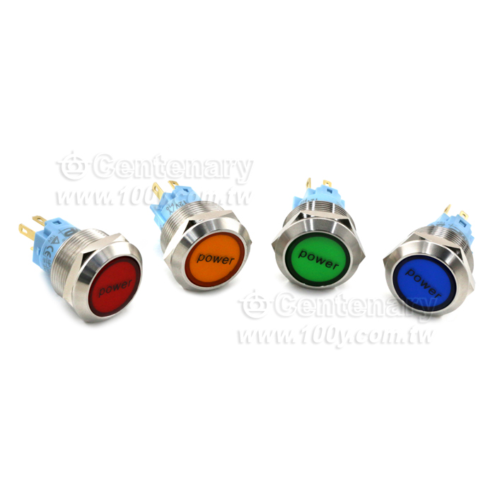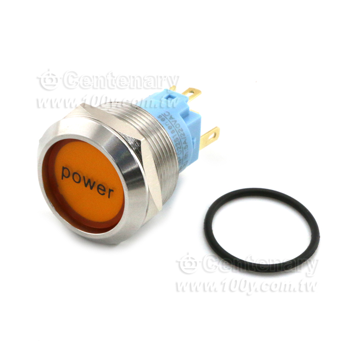 圓形發光金屬按鍵開關 黃色 22mm 12V