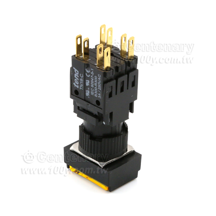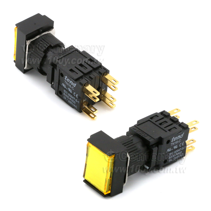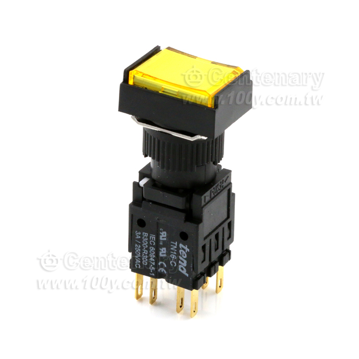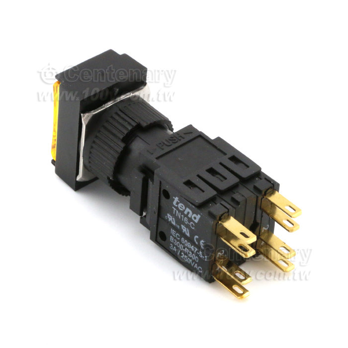 16mm 長形復歸按鈕開關 2a2b 黃色