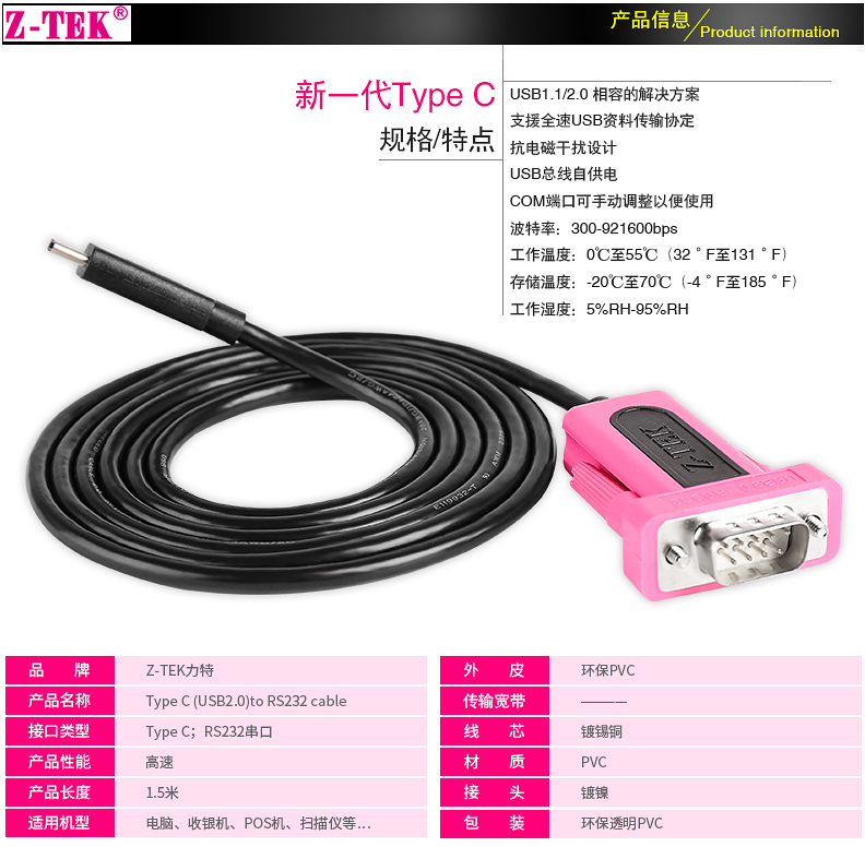 Type C (USB2.0) to RS232 Cable