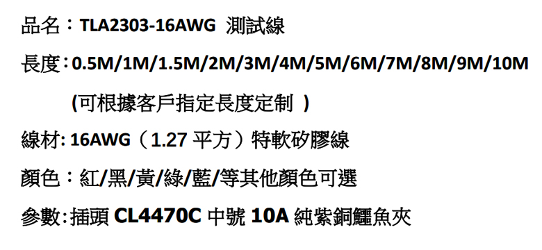 TLA2303-16AWG-紅+黑+黃+綠+藍-1M