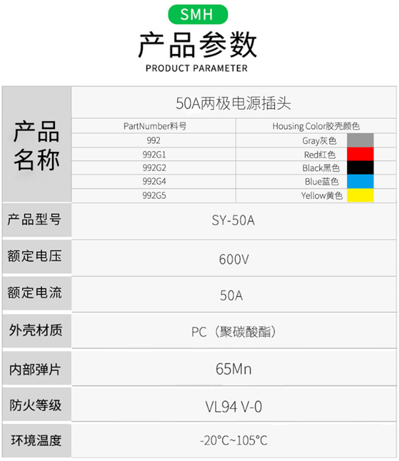 功率電動叉車充電器插頭 48*35*16mm -灰色