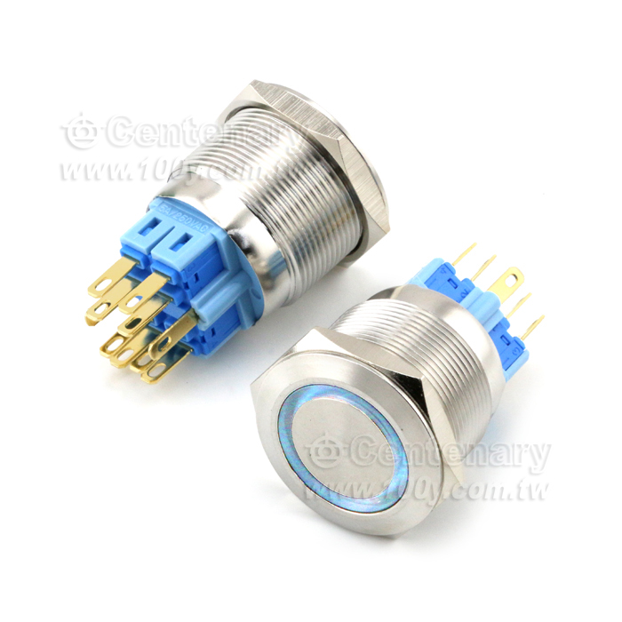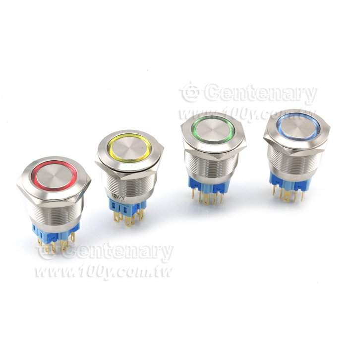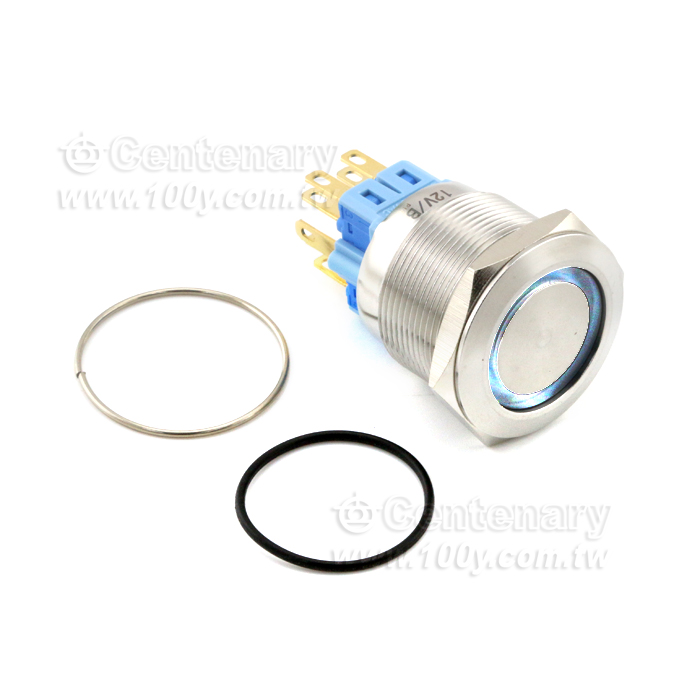 25mm不銹鋼環形自鎖帶燈按鈕 LED12V 紅色