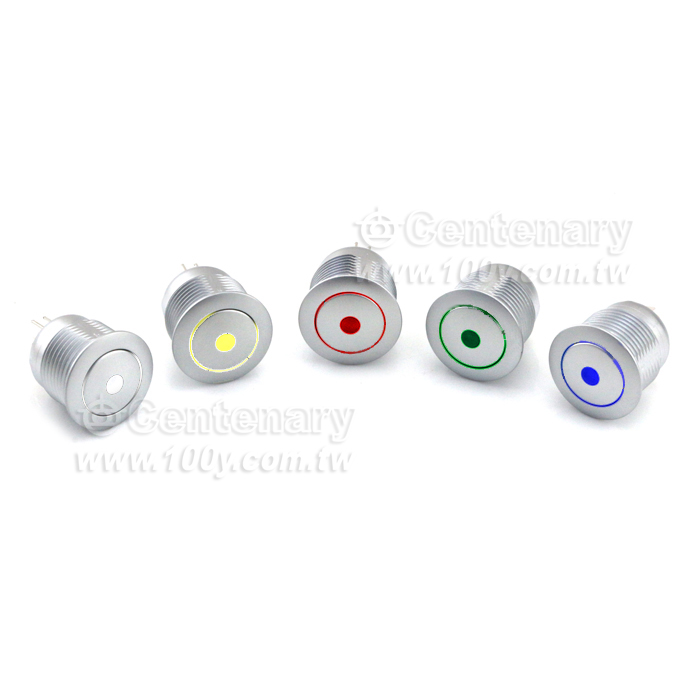 有段按鈕開關 Φ16mm 鍍鉻 圓點 Led:綠色