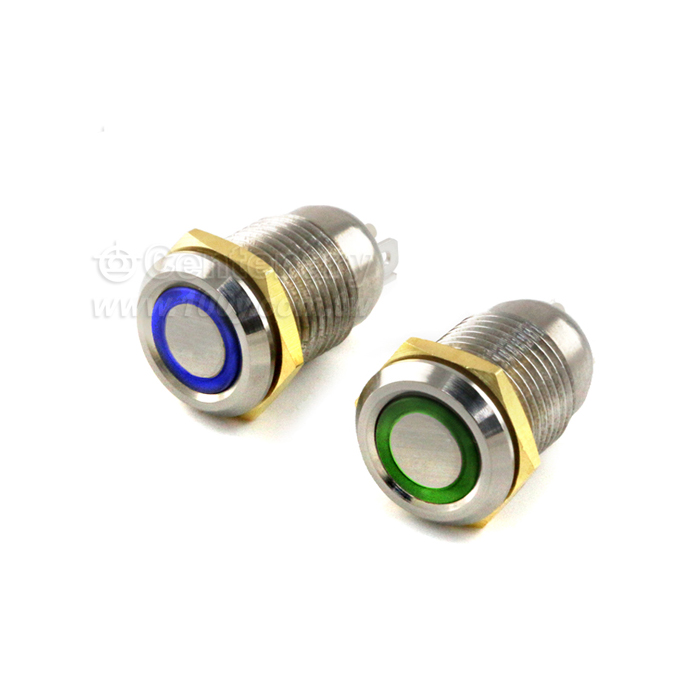 Φ12mm不鏽鋼按鈕開關 LED:綠色