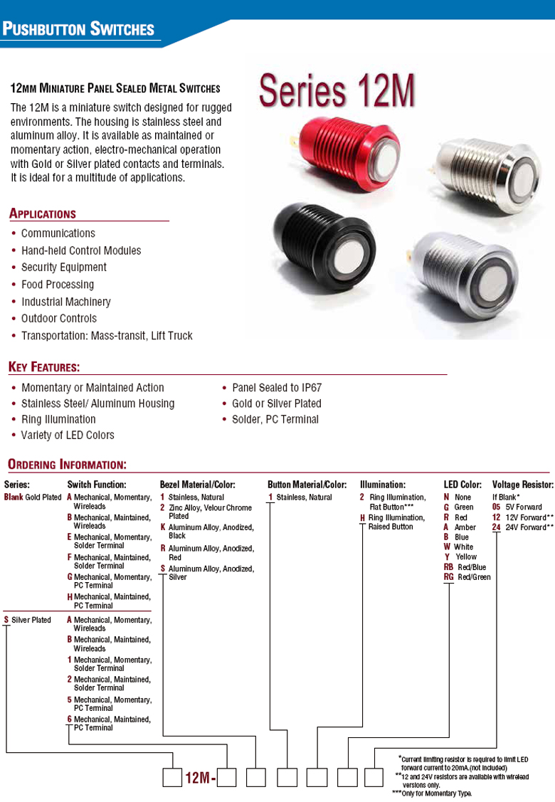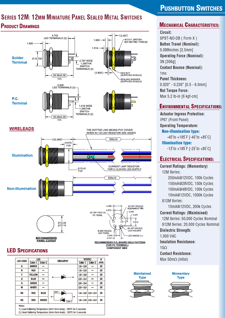 Φ12mm鋅合金按鈕開關 LED:紅色