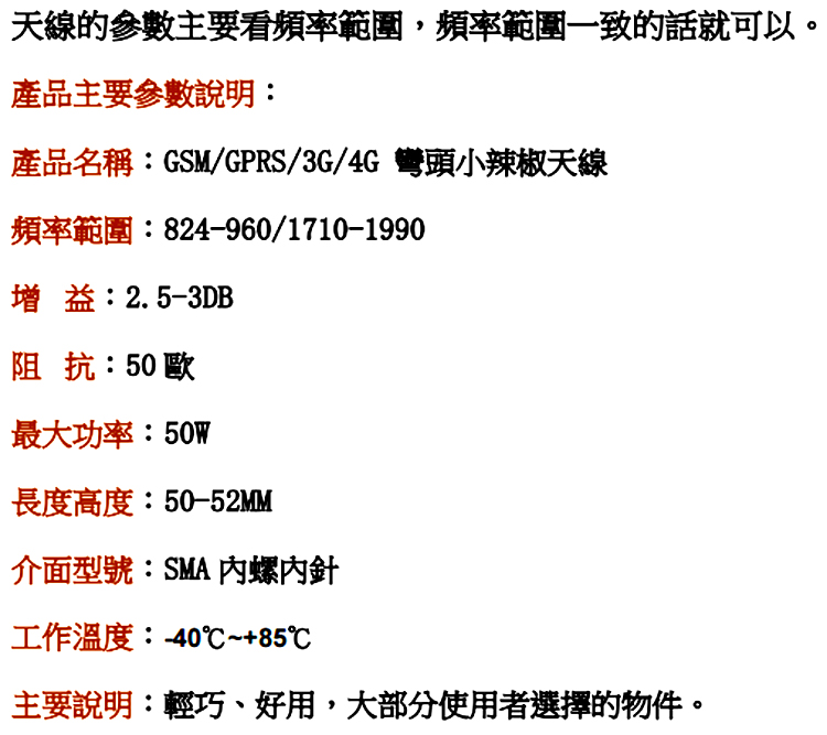 膠棒天線-2G/GSM/GPRS-L-SMA(內針)