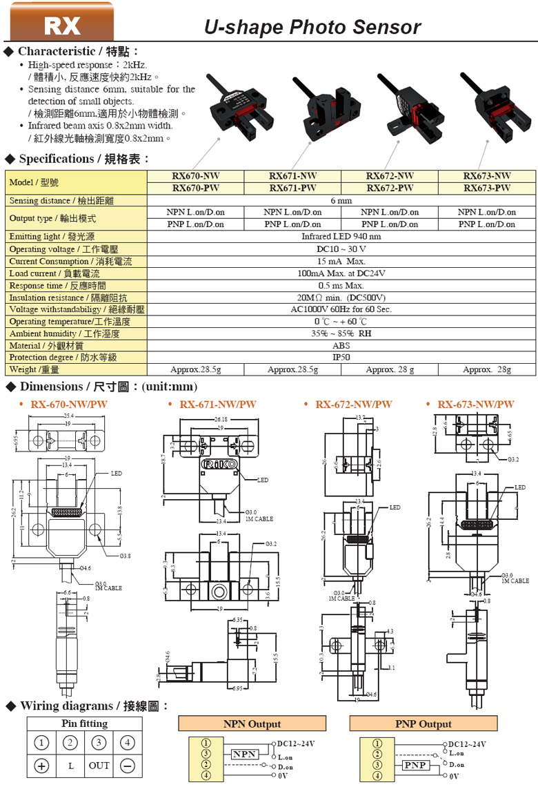 U型光電傳感器