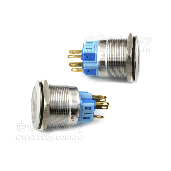 25mm不銹鋼環形自鎖帶燈按鈕 LED 24V 綠