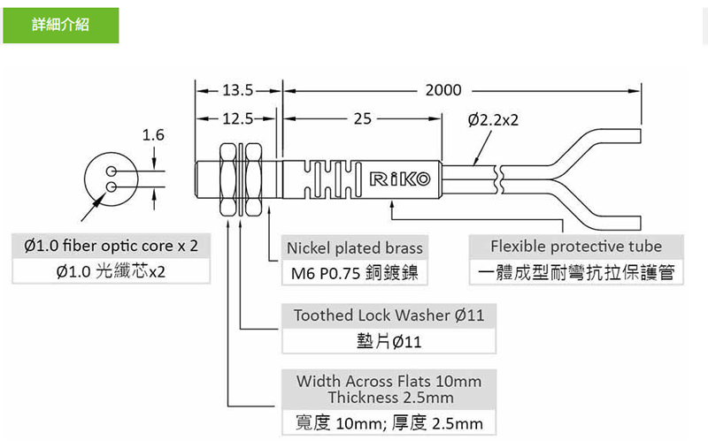 反射型M6耐彎光纖線 2M