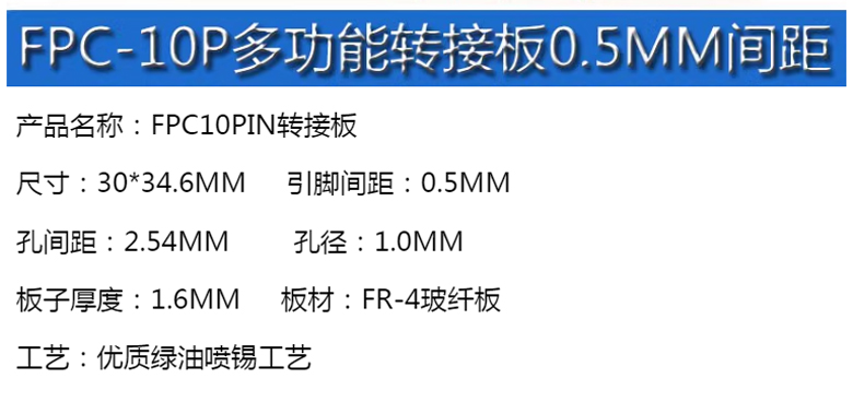 FPC/FFC-單面轉接板-10P-0.5mm-2.54