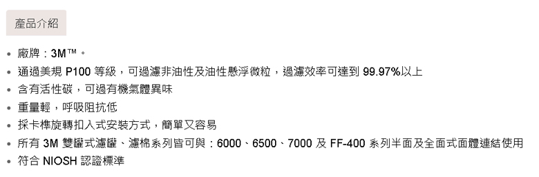 P100 有機濾棉