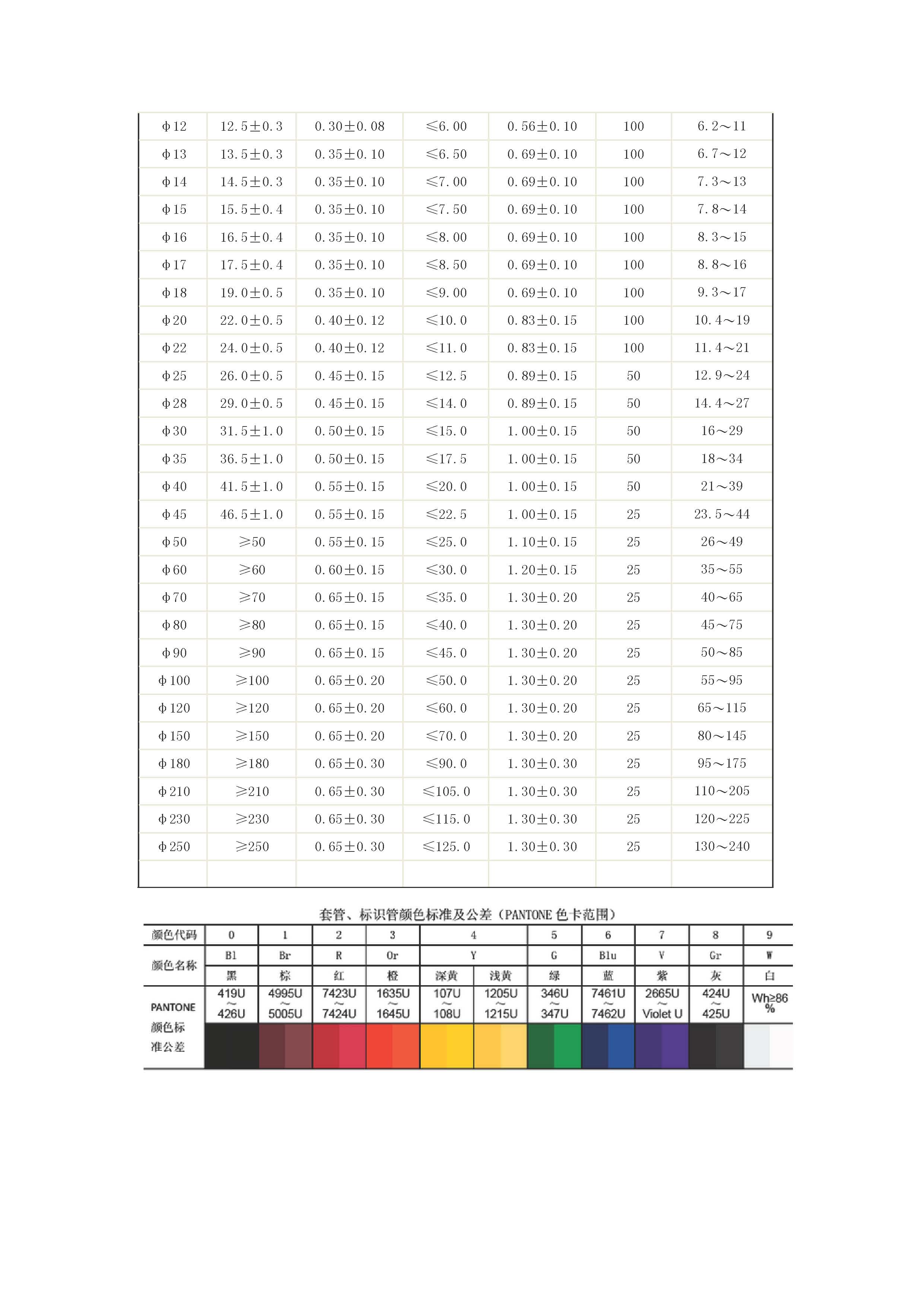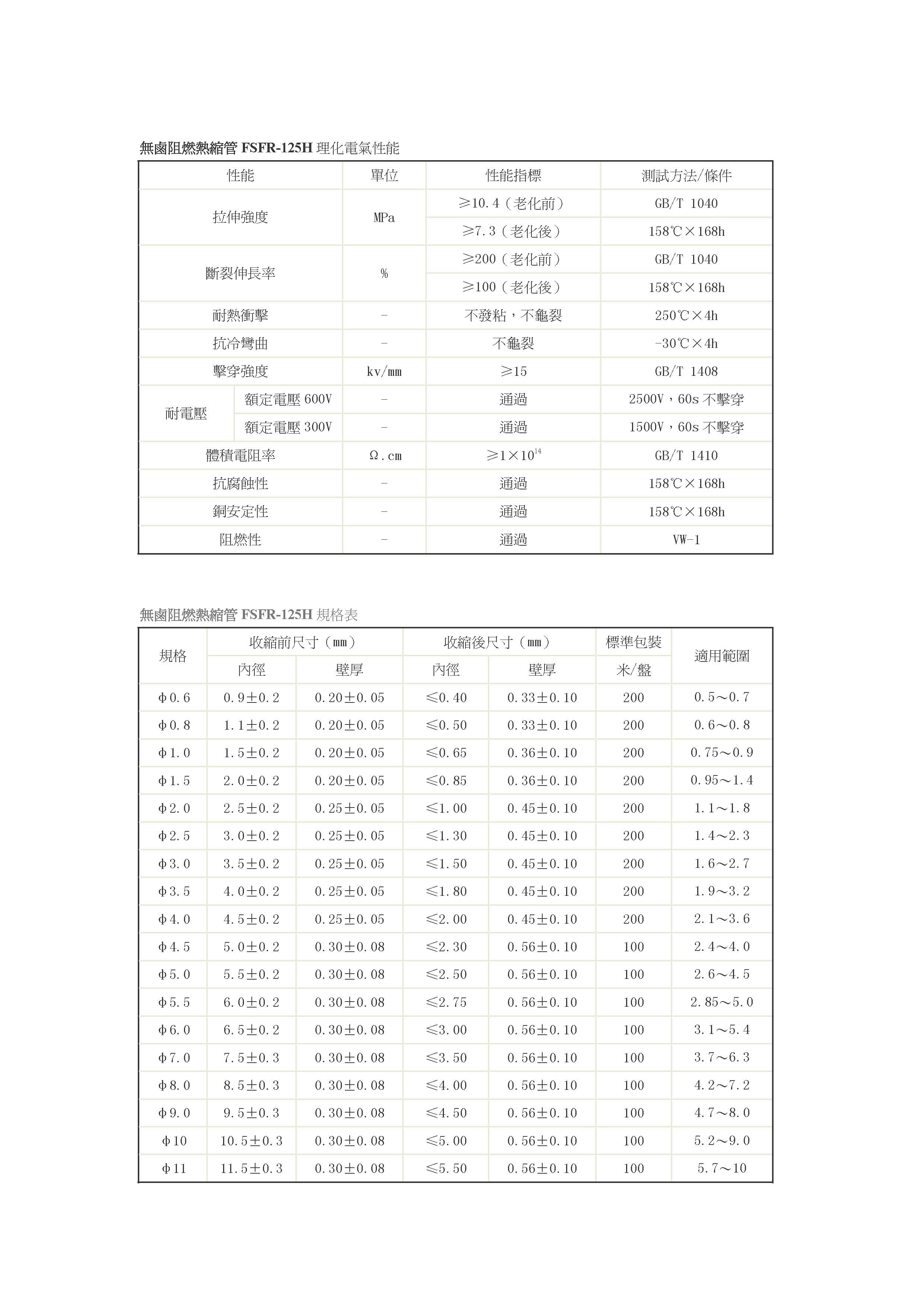 ψ10無鹵阻燃熱縮管 125℃ 600V (ROHS)