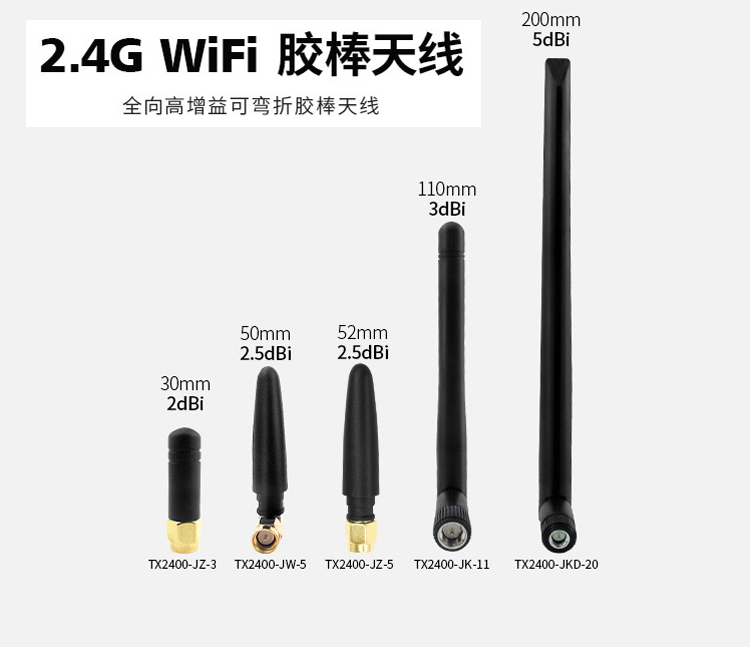 2.4GHz高增益彎頭純銅天線SMA 2.5dbi