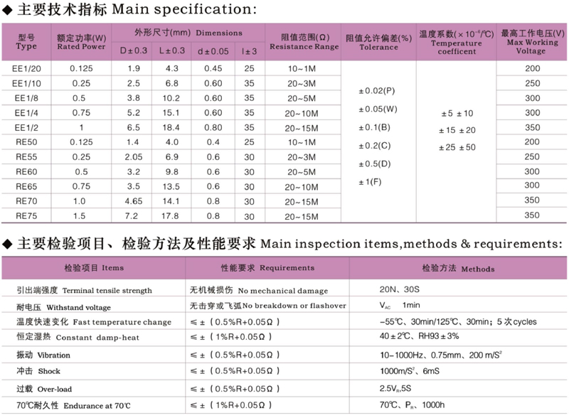 高精密金屬膜電阻 3/4W