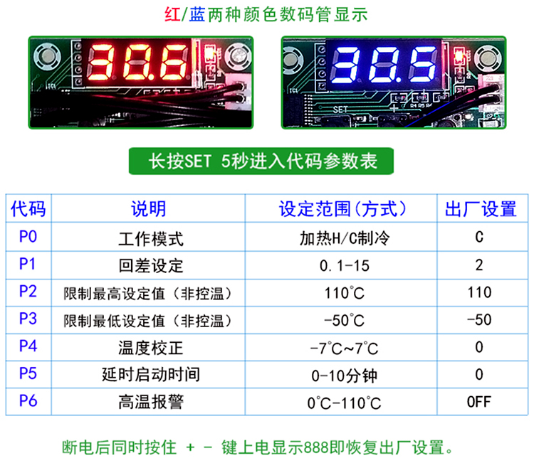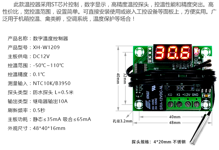 數顯溫控器24V藍光 48*40*16mm -50~110℃