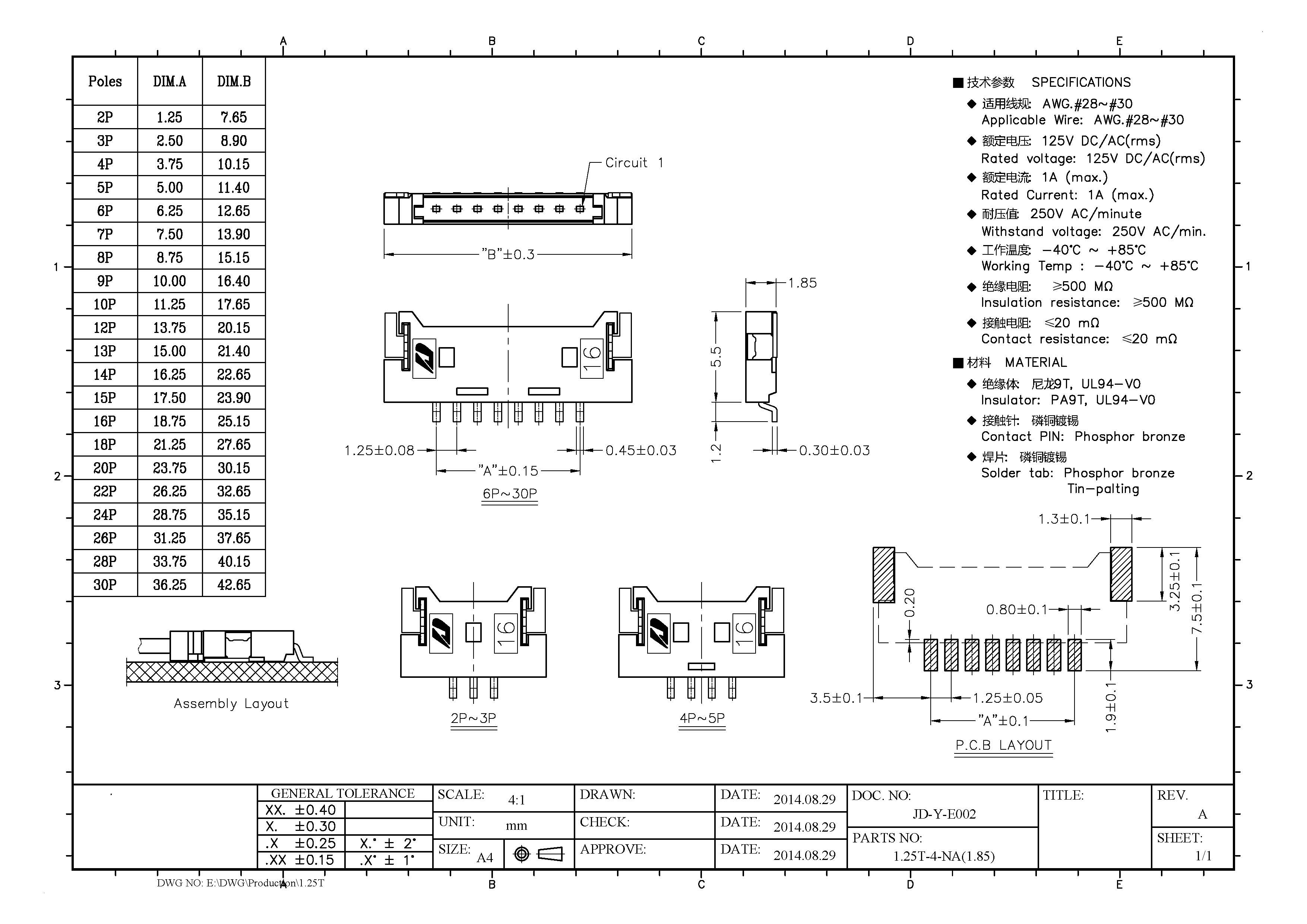 1.25mm-3P 臥式公座