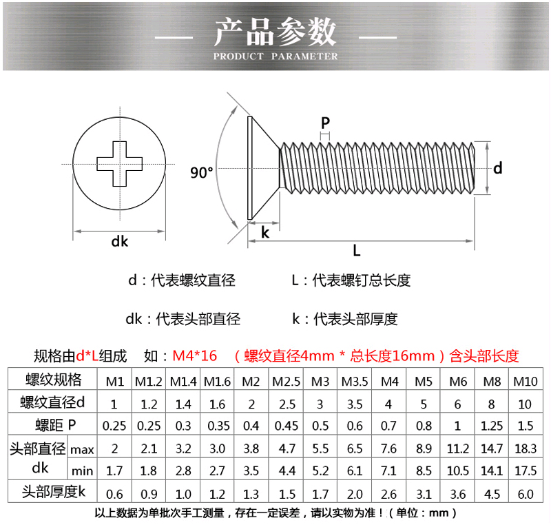 十字沉頭機械牙銅螺絲